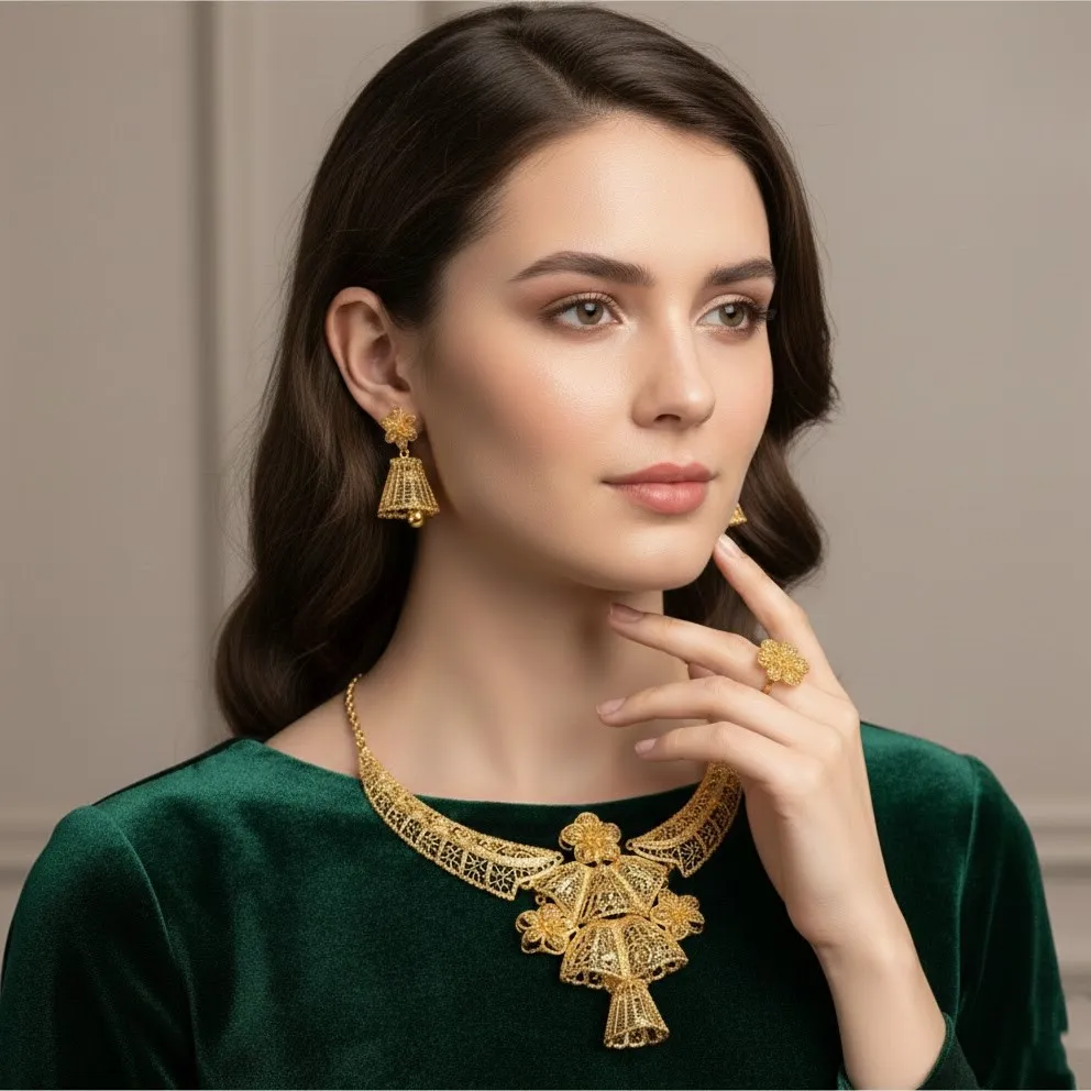 Elegant Filigree Gold Jewelry Set Collection
