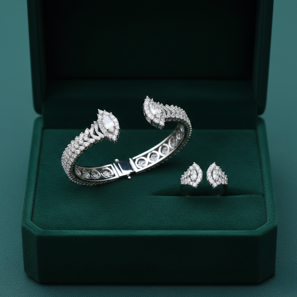 Be the first to review “Radiant Marquise Diamond Open Cuff Jewelry Set”