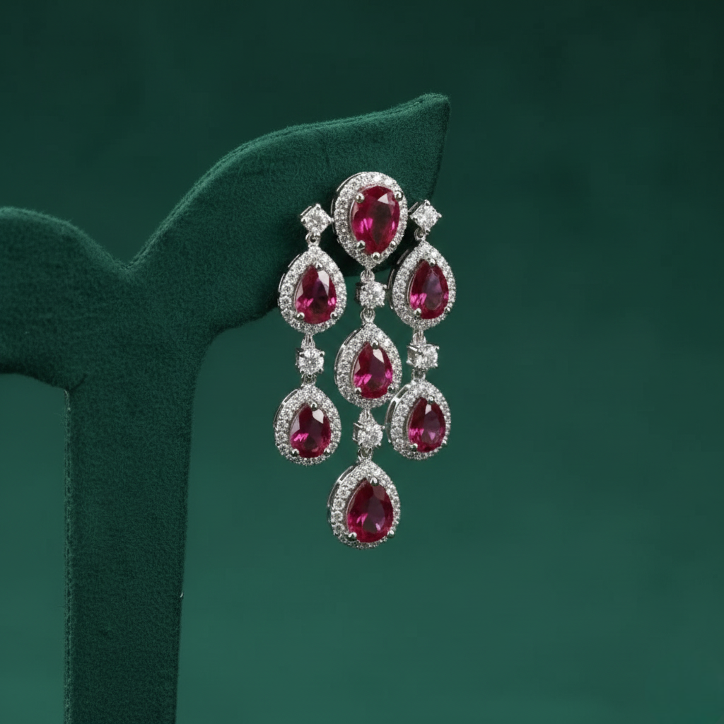 - Exquisite Tiered Necklace: A magnificent fringe-style necklace featuring cascading teardrop stones in a brilliant crimson hue.