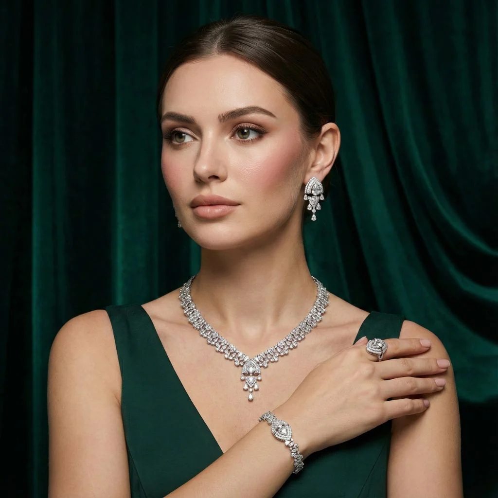 Elevate your glamour with this breathtaking complete jewelry suite! Designed for moments that demand a touch of royal brilliance, this coordinated set captures and reflects light from every angle.