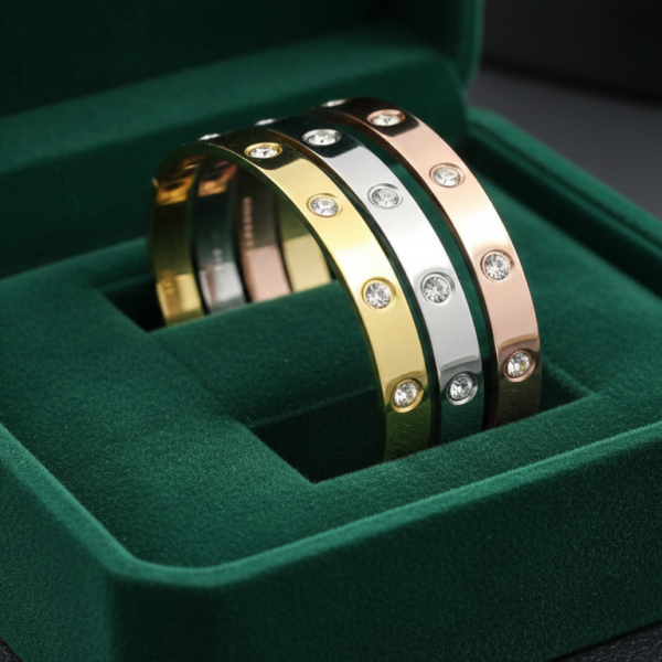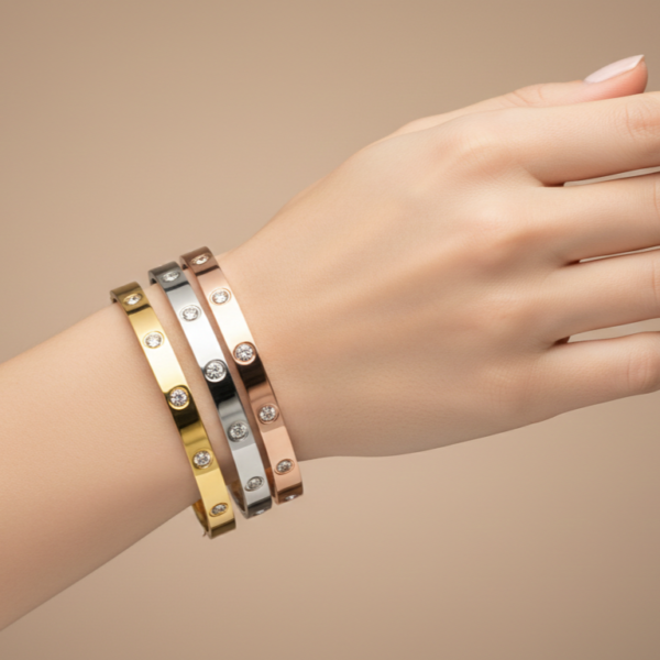 Elegant Trio Set Crystal Inlaid Stainless Bangles
