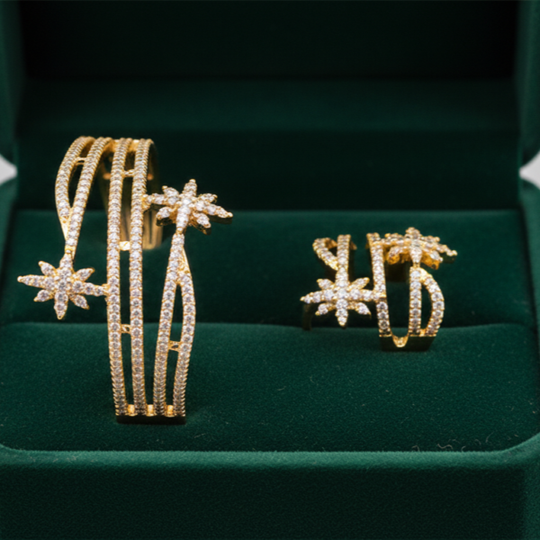 AED390This luxury Arabian-style jewelry features brilliant synthetic zircon stones set in high-quality copper alloy or stainless steel, enhanced with platinum and rhodium plating. Designed in Italy and Turkey, it’s ideal for weddings, vacations, special occasions, and includes a 1-year warranty.